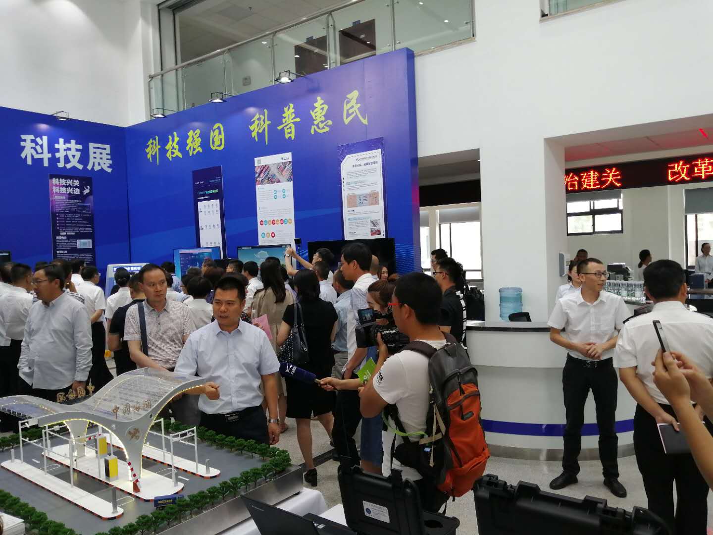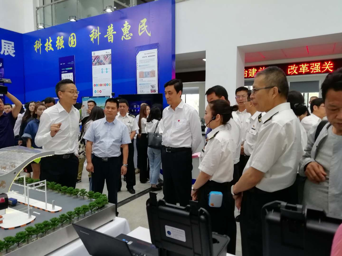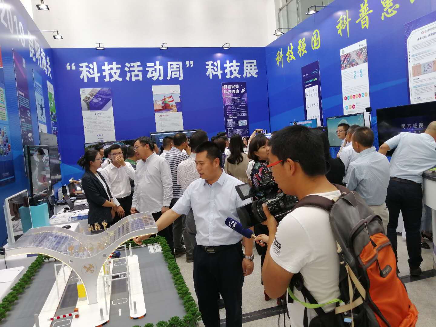 本次科技周活動受到媒體廣泛關注,云橋網、中國日報、云南日報、昆明日報等多家媒體對昆明海關科技周活動進行報道。此次科技展參觀人數(shù)達1500余人次,昆明海關和云南省科技廳、廣大關警局員,云南省科學技術廳和商務廳的領導,企業(yè)人員等參觀了展覽。本次科技周航通的展位吸引了眾多媒體,現(xiàn)場的工作人員向媒體與來訪關員們宣傳了對近年航通的新技術以及對海關科技創(chuàng)新的新方案,受到了關警局員及相關企業(yè)的普遍好評。